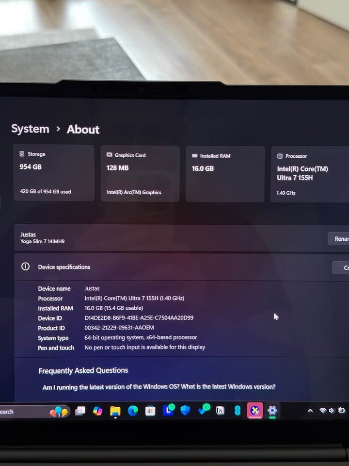 🔹 Specs: • Model: Yoga Slim 7 14IMH9